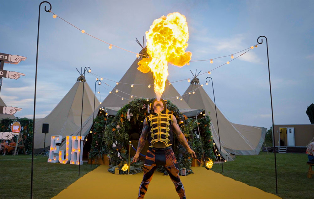 Our Warwickshire-based tipi venue has an event field, outdoor catering space and state-of-the-art sound system both indoors and outdoors. Other suitable venues include hotels with large outdoor areas, parks and exhibition centres.
