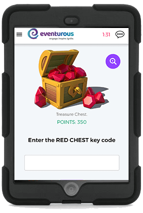 Groups must solve challenges using clues to allow them to unlock treasure chests to gain bonus points!